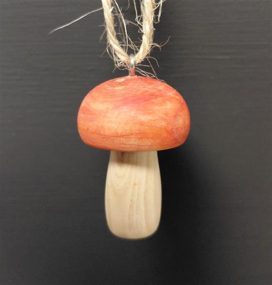 Handcrafted small Wooden mushroom which can be tied to your chosen hand tied.